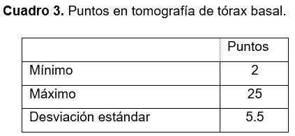 Sin embargo, se observó que, en pacientes de mayor edad y un puntaje elevado, presentaban cambios fibrocicatriciales, el hallazgo más frecuente, bandas subpleurales.